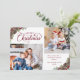 Diese schöne weiße und bordeauxfarbene Weihnachtskarte enthält 2 Fotovorlagen mit elegantem klassischem Kalligrafieschreiben, gerahmt in 2 Ecken mit Aquarellfarben mit Kiefernpflanzen, Kiefernzapfen und Heiligen Beeren. Auf der Rückseite ist eine bordeauxfarbene Aquarellstruktur. Karo in der Kollektion für viele passende Produkte oder kontaktiere mich über den Zazzle Chat, wenn du weitere passende Produkte oder andere Farbwege möchtest.