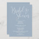 Diese dustig-blaue, elegante Script-Brautdusche-Einladung kann mit all Ihren speziellen Event-Informationen und dem QR-Registrierungscode auf der Rückseite personalisiert werden. Entwickelt von Thisisnotme©