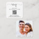 Elegante Hochzeitskartentafel mit "uAwg" in einem stilvollen Drehbuch mit Swashes. Geben Sie Ihre Hochzeitswebsite-Adresse ein, um einen QR-Code zu erstellen, damit Sie online nach UAWG scannen können. Auf der Rückseite befindet sich das Foto, das mit den Vornamen und dem Hochzeitstag überlagert wird.
