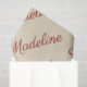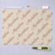 Tan Geschenkpapier verpacken Gewebe mit einem Namen gekachelt über die Vorderseite in einem eleganten Skript-Schriftart.