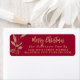 Moderne, elegante Script Rot und Gold Familie Name Weihnachtslieder Rücksendeadressen-Aufkleber. Mit einem hübschen handgeschriebenen Kalligrafie-Schriftart-Skript mit Sprichwort "Frohe Weihnachten", Imitate goldfolischen botanischen Blätter auf rotem Hintergrund. Ideal für die Weihnachtszeit, einfach zu personalisieren mit Ihren Namen und Rücksendeadresse-Infos.