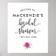 Ein elegantes Poster aus schwarz-rosa Brautparty mit handgeschriebenem Schriftart und einem Aquarellbild aus rosa Rosen mit grünen Blätter. Personalisieren Sie dieses Plakat mit dem Namen des zukünftigen und dem Datum der Veranstaltung.