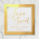Personalisieren Sie diese echte Goldfolie vor Tags mit Ihren Namen und Hochzeitdatum auf der Vorderseite unter der eleganten Skript-Liebe Sweet und fügen Sie optionalen Text auf der Rückseite in einem rustikalen Imitat Textur Hintergrund. Die Vorderseite glänzt und glänzt in einem modernen Mix aus Schriftart im echten Goldfoliendruck - auch in Silberfolie erhältlich - während die Rückseite mit UNSERER LIEBE und DANKT DEM NEUEN MR & MRS. in einfachem Schwarz-Text, aber Sie können diese Formulierung nach Ihren Wünschen personalisieren oder entfernen. Erstellen Sie Ihre eigenen, für Sie personalisierten Gastgeschenk Hochzeit-Tags aus metallischer Folie.