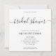Elegantes Script Schwarz und Weiß Bridal Dusche Einladung. Laden Sie Ihre Familie und Ihre Freunde mit diesem minimalen modernen Hochzeitsgeschenk-Brautparty. Personalisieren Sie diese elegante und stilvolle Einladung mit Namen, Veranstaltungsort, Datum und Uhrzeit.