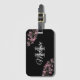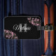 Elegantes Script Schwarz-weiß Girly Floral Monogra Gepäckanhänger