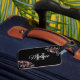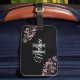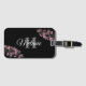 Elegante schwarz-weiße Gepäckmarke in Monogramm. Gepäckanhänger mit Blumenmuster, Aquarell. Perfekt für sie. Personalisieren Sie Ihre Eingabe und Ihren Namen.