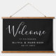 Elegantes Script Schwarz-weiß Wedding Welcome Wandteppich Mit Holzrahmen