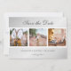 Elegantes silbernes Hochzeitsstift Foto speichert die Dattelkarten mit einer Verlobung Foto Collage und einem Script-Schriftart auf einem silbernen Hintergrund. Personalisierte Silberhochzeit speichern Sie die Dattelkarten. Per personalisierbare Silberhochzeit können Sie die Datumskarten speichern. Script Hochzeit speichern Sie die Datumskarten. Benutzerdefinierte Foto-Collage speichern Sie die Datumskarten.