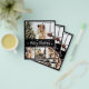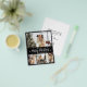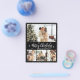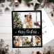 Budget, Elegant, Moderne Schwarz und Weiß 4 Foto Collage Frohe Weihnachts-Script Holiday billig Erschwinglichen dünnen Flyer in goldweiß. Dieses festliche, minimalistische, skurrile, (4) vier Foto Ferienkarte Vorlage zeigt eine hübsche Foto Collage, einige kleine Schneeflocke und sagt Frohe Weihnachten! Der Grußtext "Frohe Weihnachten" ist in einem schönen, weißen Schriftart geschrieben, der Schrift Typografie auf schwarzem Hintergrund. Auf der Rückseite mit Grußtextempfehlung auf schwarz. Hübscher Gruß Flyer für Ihre Familie und Freunde in dieser Weihnachts- und Feiertagssaison.