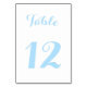 Erstellen Sie Ihre eigene individuelle, personalisierte, elegante, stilvolle, schöne hellblaue Typografie-Schrift, moderne schick hellblau und weiß, hochwertige Tischnummer-Karte. Ideal für Hochzeiten, Brautparty, Abendessen, Party oder anderen besondere Anlass. Geben Sie einfach die Tischnummer ein, um sie anzupassen.