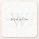 Elegantes Script Terrazzo Stone Ivory Gray Monogra Rechteckiger Pappuntersetzer