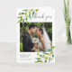 Elegantes Drehbuch Dankeschön-Karte mit frischen Wiesen-Blätter, die Ihr Lieblings-Hochzeitsfest, Namen und besondere Datum. Sie können die Dankeschön-Nachricht im Inneren personalisieren. Ein perfekter Weg, um Ihnen zu danken!