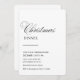 Mit dieser eleganten Weihnachtsabendeinladung laden Sie Ihre Gäste mit zeitloser Eleganz ein. Mit luxuriöser Kalligraphie und klassischer Serifentypografie ist dieses edle Design-Set der perfekte Ort für eine feierliche Feier. Mit seiner minimalistischen Gestaltung und der stilvollen schwarzen Schrift eignet sich diese Karte ideal für Weihnachtsessen, festliche Ansammlungen oder Feierlichkeiten. Personalisieren Sie einfach Ihre Veranstaltungsdetails, UAWG und Veranstaltungsorte für eine geschliffene und unvergessliche Einladung.