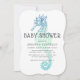 Blautönen Seepferd Babydusche Einladung. Die Rückseite der Einladung hat eine solide volle blaue Farbe. Moderne Typografie wird verwendet. Melde mich, wenn du Hilfe brauchst oder spezielle Wünsche hast.