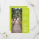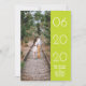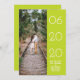 Elegantes Side Swept Foto Ankündigung Datum freihalten mit einem einfachen und modernen Rechteck-Design in Limonem Lochgrün. Fügen Sie ein Foto und Ihre Hochzeitsdetails zu anpassen. Hintergrundfarbe auf der Rückseite der Einladung kann geändert werden, um das Foto zu ergänzen oder Ihre Hochzeitsfarbe hinzuzufügen.