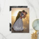 Wir danken Ihren Gästen für Ihre Unterstützung bei der Feier Ihres besonderen Tages mit diesem schlicht eleganten Design mit modernem Drehbuch, klassischen Schwarz-, Weiß- und Grautönen mit metallisch silbernen Adern. Passen Sie es mit Ihrem Foto, Namen und Hochzeitsdatum auf der Vorderseite zusammen mit Ihrer Nachricht und Ihren Namen auf der Rückseite an.
