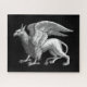 Puzzle in einem eleganten silbergrauen / grauen Bild eines Greifes, einem mythischen Kreuz zwischen Adler und Löwe, mit einem subtilen 3-D-Look auf schwarzem Hintergrund