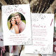 Elegantes Silver Lace Foto Mauve auf White Wedding Save The Date
