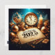 Eine luxuriöse Silvesterkarte für 2025 mit elegantem goldenem Design, das den festlichen Geist von Silvester einfängt. Mit einer klassischen Uhr, Kerzenlicht und wunderschön verpackten Geschenken fügt diese Karte jedem Fest eine Touch von Eleganz hinzu