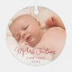 Hast du dieses Jahr ein Baby bekommen? Fügen Sie Ihrem Baum eine Erinnerung mit diesem modernen Ornament mit einem einfachen Design mit der Nachricht "Mein erstes Weihnachten" in einem eleganten, dünnen roten Drehbuch zusammen mit dem Namen Ihres Babys und das Jahr über Ihrem Lieblings-Foto. Fügen Sie auf beiden Seiten das gleiche Foto oder auf beiden Seiten ein anderes. Ein geschlechtsneutrales Design, das gut für einen Jungen oder ein Mädchen ist. Dieses Ornament ist auch ein großartiges Geschenk für nahe Freunde und Familie.