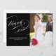 Kundenspezifisches elegantes formales Skript-danken Schwarzweiss-Hochzeits-Foto Ihnen zu kardieren. Elke Clarke© personifizieren diese Schablone mit Ihren eigenen Hochzeits-Foto- und Braut- und Bräutigamnamen und Hochzeitsdatum.
