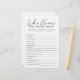 Spüren Sie Ihr modernes Schwarz-Weiß-Brautparty mit dem eleganten Script Who Knows The Bride Best Game! Dieses ausgeklügelte Brautparty-Spiel bietet einen minimalistischen Script-Schriftart für einen sauberen, zeitlosen Look. Lachen Sie und verbinden Sie Ihre Lieblings-Braut-Erinnerungen, während Sie versuchen zu beweisen, dass Sie ihr Bestes wissen. Mit nachdenklichen Fragen, die ein Gespräch auslösen, sorgt dieses Spiel für ein herzliches Fest. Das elegante Script Game ist perfekt für ein stilvolles, intimes Brautparty mit nahen Freunden geeignet und bietet eine Touch von Auszeichnung. Es ist eine denkwürdige Art, die Braut zu ehren, während man seine Gäste zusammenbringt. Machen Sie Ihr Brautparty ein, um sich mit diesem einzigartigen Spiel zu erinnern!