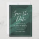 Diese schlichte und elegante Save the Date-Hochzeitseinladung besticht durch einen grünen Aquarellhintergrund mit Farbtönen von Smaragdgrün bis Waldgrün. Das Design erlaubt es, die Farben anzupassen, da die Aquarellfarbe auf dem farbigen Hintergrund sitzt. Oben wird "Save the Date" in großer und fett formatierter Schriftzeichen hervorgehoben, ergänzt durch klassische Serifentypografie und Schriftzeichen-Akzente für die Erholung des Textes. Ein dünner weißer Rahmen um den Rand sorgt für eine Touch an Eleganz. Auf der Rückseite ist ein Bereich für eine Verlobung-Foto mit einem Schwarz-Weiß-Filter, die Sie im Bearbeitungsprogramm ändern können, oder Sie können wählen, um das Foto zu entfernen, verlassend ein hübsches Aquarellbild. Diese moderne, minimalistische Einladung ist perfekt für jede Jahreszeit, einschließlich Frühling, Sommer, Herbst, Herbst und Winter. Seine elegante und schlichte Eleganz macht es zu einer vielseitigen Wahl für jedes Hochzeitsthema und fügt Ihrem besonderen Tag eine Touch Klasse hinzu. Einfach stilvolle, elegante grüne Wasserfarbe Save the Date Einladung Hochzeit. Erhältlich als gedruckte Einladung oder als digitale Einladung zum Herunterladen, dass Sie E-Mail senden können oder vor Ort gedruckt haben!