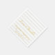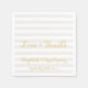 Erstellen Sie Ihre eigenen individuellen, personalisierten, elegant, modern, Imitate silberne Streifen Muster, schöne Imitate golden Typografie / Drehbuch / Schriftart, Hochzeit / Jubiläum Party Cocktail Papierservietten. Geben Sie einfach Braut und Bräutigam oder Ehefrau und Ehemann Namen, und das Hochzeitstermin, um sich anzupassen. Elegante, elegante Papierservietten, perfekt für Hochzeitsempfang, Jubiläumsfeiern, Verlobungsfeiern und vieles mehr.