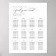Begleiten Sie Ihre Gäste mit Anmut und Eleganz mit unserem eleganten Script Wedding Table Seating Chart. Dieses wunderschön gestaltete Diagramm bietet nicht nur eine übersichtliche Sitzordnung, sondern auch eine raffinierte Touch in Ihrem Dekor für den Hochzeitsempfang. Das Diagramm besticht durch eine saubere, minimalistische Anordnung mit den Namen Ihrer geschätzten Gäste in einem schönen Skript und verkörpert das Wesen moderner Eleganz. Es ist perfekt auf jedes Hochzeitsthema zugeschnitten und ermöglicht es Ihren Gästen, ihren Platz zu finden, um einen reibungslosen Übergang von der Zeremonie zur Feier zu gewährleisten. Ideal für Paare, die eine Mischung aus Funktionalität und ästhetischer Anziehungskraft schätzen, ist diese Sitzkarte ein zentrales Element, um eine unvergessliche und organisierte Veranstaltung zu ermöglichen.