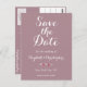 Elegantes Skript Mauve Wedding Save the Date Postkarte