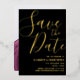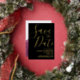 Elegantes Skript Moderne Schwarz & Gold Save the Date Foil Einladung. Einfache, elegante Schwarz-Gold-Folie Save the Date mit Foto im Hintergrund.