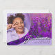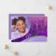 Eine einzigartige, individuell gestaltete Foto Abschluss-Anzeigenkarte mit Designelementen aus elegantem handgeschriebenem Stil mit modernem Text. Das Foto der Absolventen wird durch wunderschöne lila Lavendel-Blume auf violettem Hintergrund ergänzt. Auf der Kartenrückseite finden Sie personalisierte Textstellen für Informationen über den Abschluss und die weitere Reise. Sie können die Primär- und Textfarben auf der Kartenrückseite leicht an Ihre Bedürfnisse anpassen. Um mehr zu sehen, besuchen Sie meinen Shop hier unter "www.Zazzle.com/LakeViewCardCo". Danke