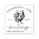 Diese rustikale Briefmarke des Bauernhauses würde auf Eierschachteln, Papiertüten und anderen Verpackungen für frische Produkte aus Ihrem Familienbetrieb wunderschön aussehen! Es zeigt eine Vintage Abbildung eines Hahns in der Mitte. Oben steht Ihr Familienname in Vintager Typografie, graziös biegen. An den Seiten gibt es ein etabliertes Datum, und am Ende zwei benutzerdefinierte Texte: "Frische Eier züchten" in einem skurrilen, eleganten Kalligrafieschrift und einem "handgeschnürten" Text, in dem Sie den Tag der Eiersammlung handschreiben oder auf Ihre Telefonnummer ändern können. Um diese Briefmarke anzupassen, klicken Sie auf die Schaltfläche"Diese Vorlage personalisieren" und ändern Sie die Informationen.