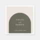 Verwandeln Sie Ihre Rezeptionstischdekoration in einen zusammenhängenden, durchdacht gestalteten Raum mit diesen eleganten, minimalistischen personalisierten Hochzeitsservietten. Jede moderne Serviette zeigt einen boho dunklen Salbeigrünen Bogen auf einem neutralen beigen Hintergrund, wobei die Namen des Brautpaares und das Hochzeitsdatum elegant in zarter Life-Roman-Schrift-Typografie gedruckt sind.