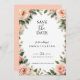 Mit dieser wunderschön ausgewogenen rett-the-date-Karte können Sie Ihren besonderen Tag mit zeitloser Eleganz verkünden. Ein weicher, blumengeschmückter Rahmen mit pastellfarbenen Rose und üppiger Vegetation umrahmt sanft ein weißes Zentrum, das den idealen Platz für Ihre personalisierte Botschaft bietet. Dieses Design mit raffinierter Schriftzeichen und einer minimalen, aber romantischen Ästhetik ist ideal für Frühjahrsfeiern, Gartenzeremonien oder Paare, die den schlichten Blumencharme schätzen. Eine anmutige Art, den Ton für Ihre Feier Set.