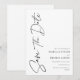 Dies ist ein minimalistisches und schick Save the Date für eine Hochzeit. Es ist ein einfaches und stilvolles, handgeschriebenes Skriptdesign in klassischem Schwarz/Weiß. Bitte kontaktieren Sie den Designer, wenn Sie Fragen zu diesem Design haben.