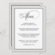 Eine wunderschön elegante Hochzeitskarte mit kalligrafischem Schriftzeichen-Akzent mit einem breiten Rahmen in der Farbe Ihrer Wahl. Hier mit einem silbergrauen Rahmen dargestellt, können Sie diese Farbe zu jeder anderen Farbe, indem Sie "anpassen" und wählen Sie eine Hintergrundfarbe, um Ihre Hochzeitsfarbe. (Wenn Sie die Farbe bearbeiten möchten, müssen Sie beide Seiten der Karte bearbeiten.) Bearbeiten Sie den Text mit Ihren Menüinformationen.