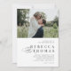 Eine klassische Schwarz-Weiß-Foto-Hochzeitseinladung mit horizontalem Foto und elegantem Kalligraphieskript und sauberem bearbeitbarem Text. Klicken Sie auf die Schaltfläche Bearbeiten, um dieses Design anzupassen.