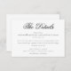 Elegantes Skript Schwarz-weiße Hochzeitdetails Begleitkarte