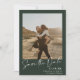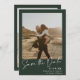 Elegante Skriptkalligrafie einfach 2 Fotos tief grün und weiß Hochzeit speichern das Datum.