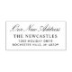 Eleganter Selbstfarbstamper bietet Unsere neue Adresse (oder Ihre andere bevorzugte Formulierung) in der Schrift mit benutzerdefinierter Rücksendeadresse. Ideal, um anzukündigen, dass Sie umgezogen sind und Ihre neue Adresse an Familie und Freunde weiterzugeben.