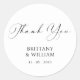 Mit diesen eleganten Schriften "Danke" Hochzeitsaufklebern ist die Dankbarkeit zeitlos. Mit klassischer schwarzer Kalligrafie, individuell anpassbaren Paarbezeichnungen und dem Hochzeitsdatum sind diese runden Etiketten perfekt zum Versiegeln von Umschlägen, zum Dekorieren von Gefälligkeitstaschen oder zum Hinzufügen einer personalisierten Touch zu Geschenken. Ein elegantes und vielseitiges Design für moderne Hochzeiten, Empfänge und Feiern.