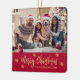 Modernes Script Snowflake Rot und Gold Foto Frohe Weihnachts Script Keramik Ornament Holiday. Enthält eine) Bildvorlage "Frohe Weihnachten" Text. Der "Frohe Weihnachten"-Grußtext ist in einem wunderschönen, handgeschriebenen Schriftart-Script und um Goldschneeflocken auf rotem Hintergrund geschrieben. Diese Keramik Ornament Niedliche Geschenk für Ihre Familie und Freunde in der Weihnachtszeit.