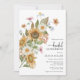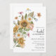 Diese moderne Hochzeitseinladung beinhaltet atemberaubende handbemalte Aquarellfarben, rosa und staubblaue Wildblumen, wunderschöne gelbe Sonnenblumen und Salbeigrün, die als hübsches Bouquet angeordnet sind, das sich perfekt für diejenigen eignet, die skurrile Boho/bohemianische Eleganz Liebe finden. Finden Sie passende Artikel in der modernen Hochzeitskollektion für Sonnenblumen.