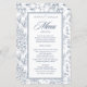 Elegante staubblaue Vintage Rose Blumenblumen botanisches Muster auf einem weißen Hintergrund Kalligraphie Skript Hochzeitsmenü Vorlage.