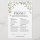 Modernes, elegantes Brautparty-Spiel "What's on Your Phone" mit sommerlichen Wildblumen in Aquarelltönen, wie Süßerbsen, Lupinen, Schnappdragons und vielem mehr, in hellen, sommerlichen Farbtönen wie Rosa, Lilie, Lavendel, Gelb, Blues und zarten grünen botanischen Blätter. Personalisieren Sie Ihre Antworten in schwarz, betont mit schönen modernen handgeschriebenen Kalligraphie. Teil einer koordinierten Suite. Suite hier ansehen: https://www.zazzle.com/elegant_summer_wildflower_floral_bridal_shower_invitation-256486599269422892 Kontakt-Designer für passende Produkte. Copyright Anastasia Surridge für Elegant Invites, alle Rechte vorbehalten.