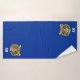 Elegantes, schönes Tigergesicht und Monogramm auf dem königsblauen Badetuch-Set.
