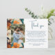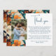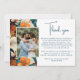 Elegantes tropisches Blume florales Hochzeitsfest Foto Dankeschön Karte. Ein atemberaubendes Blumendesign auf einem reichhaltigen, orangefarbenen und aquamarinen Hintergrund mit einem individuellen Foto. Fügen Sie Ihrem Dankeschön Notiz und Ihrem Foto.