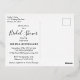 Diese elegante und moderne Postkarte aus Tropengold "Brautparty" lädt Sie ein, Freunde und Familie zu einer Hochzeitsfeier einzuladen. "Brautparty", der Name, das Datum und die Lage der Braut werden auf der Vorderseite in der gewünschten Folienfarbe angezeigt. Der Text wird durch einen vereitelten Rahmen hervorgehoben. Tropische Blätter, Blattwerk und Farne ragen hinter dem Rahmen auf schwarzem Hintergrund heraus. Goldfolien-Spritzer verleihen dem Design ein wenig raffinierte Lustigkeit. Die Rückseite der Postkarte hat die Brustdetails in schwarz.