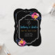 Teilen Sie mit diesem lebendigen und eleganten Design die Details Ihres großen Tages. Set vor einem dunklen Hintergrund, um die Dynamik des Blumendesigns zu zeigen. Alle Schriftart und Formulierungen können individuell angepasst werden. Hintergrund- und Schriftart-Farben können ebenfalls angepasst werden.